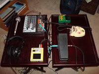 I added quite a bit to the setup this week, but it was all boring stuff - a mixing board, a usb audio interface, cables, power adapters... but now I can record with a gajillion times better quality AND I can run the kaoss through an effects loop.